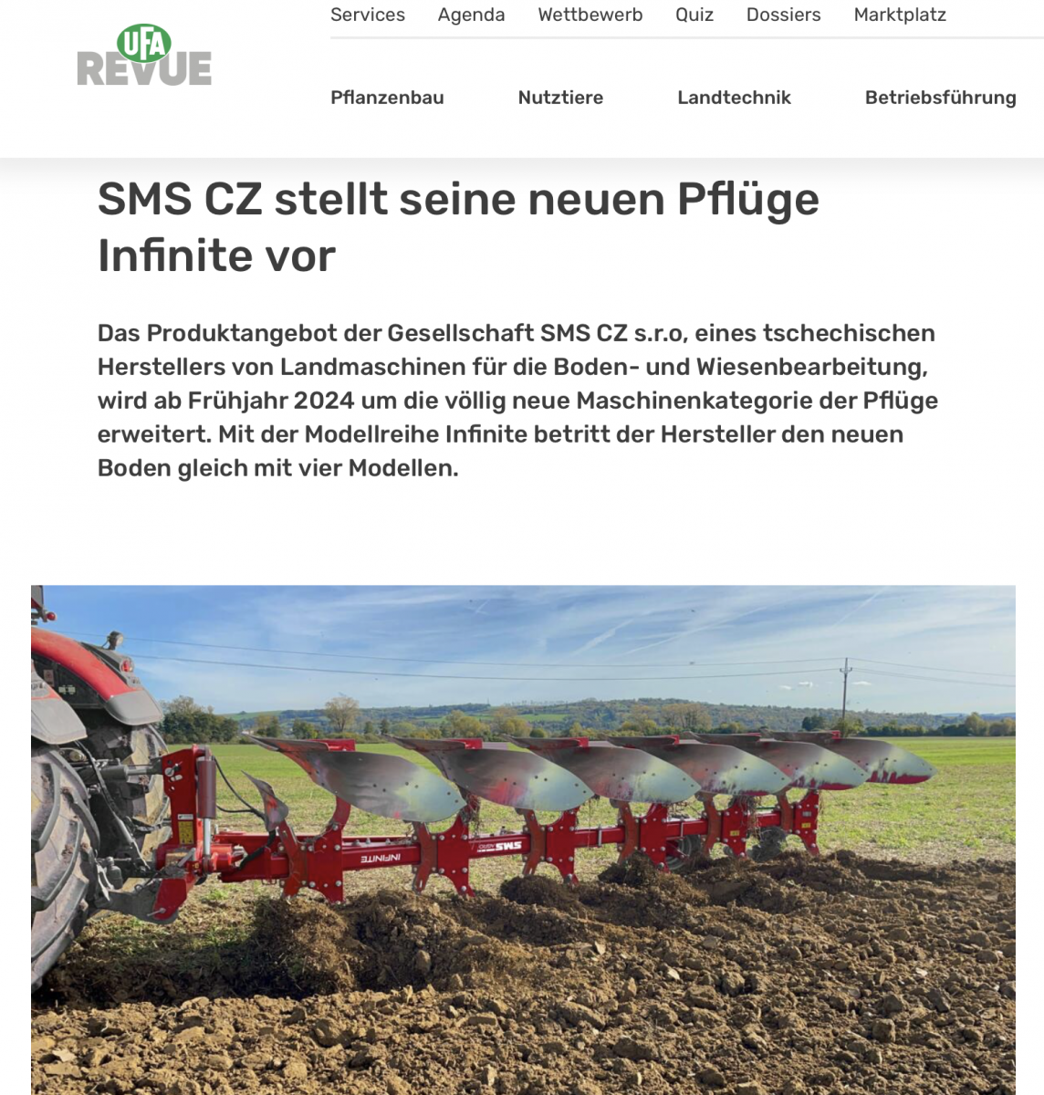 SMS CZ stellt seine neuen Pflüge Infinite vor (UFA Revue, CH, 27. 8. 2024)