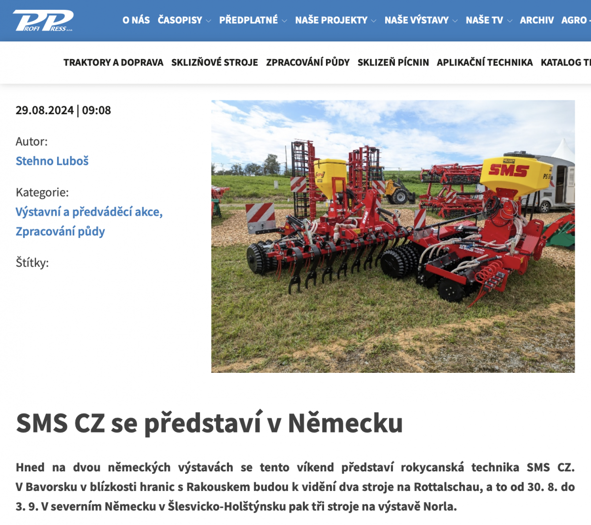 SMS CZ se představí v Německu (Agroportal24h.cz, CZ, 3. 9. 2024)