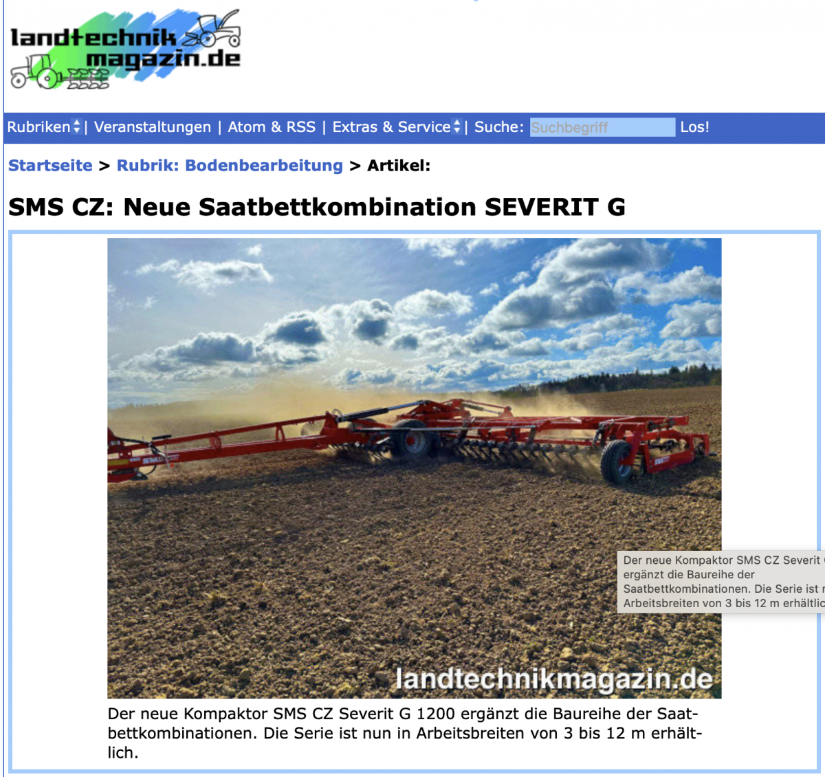 SMS CZ: Neue Saatbettkombination SEVERIT G (Landtechnik magazin, DE, 2. 9. 2024)