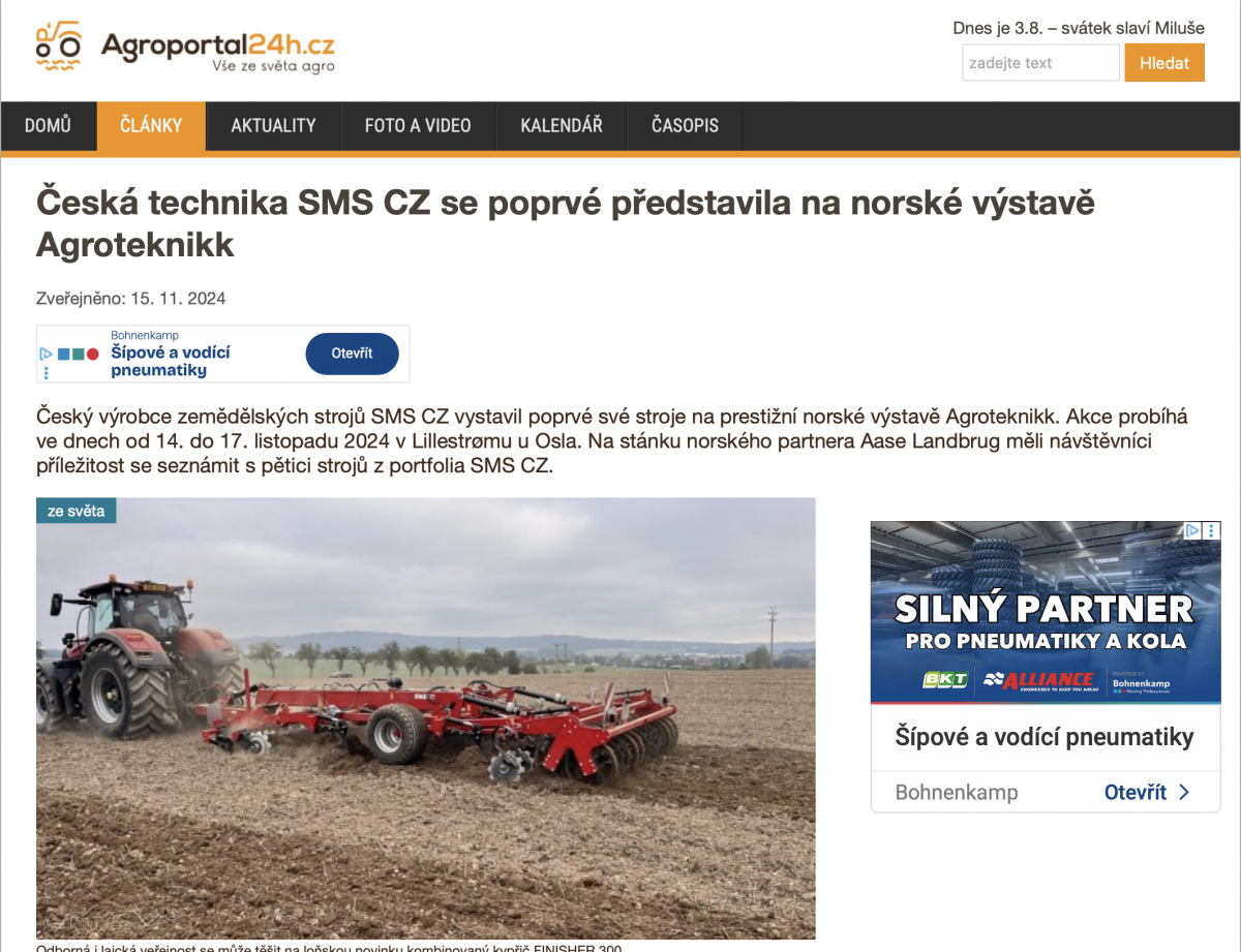 SMS CZ na Agrotechniek Holland 2024 (Agroportal24h.cz, CZ, 12. 9. 2024)