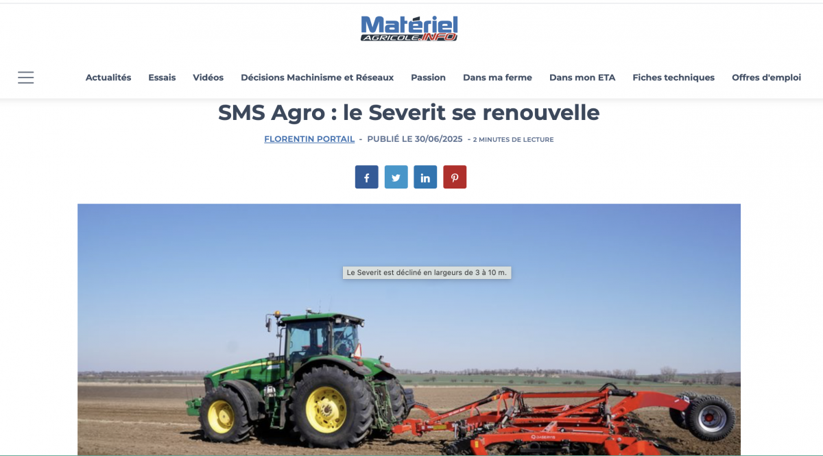 SMS Agro : le Severit se renouvelle (Materiel Agricole, FRA, 30. 6. 2025)