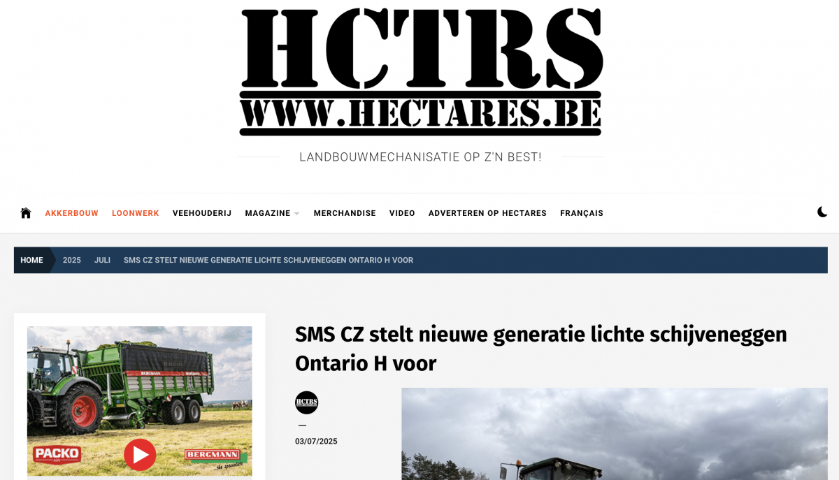 SMS CZ stellt neue Generation der angebauten Scheibeneggen ONTARIO H vor (Landtechnik magazine, DE, 14. 7. 2025)