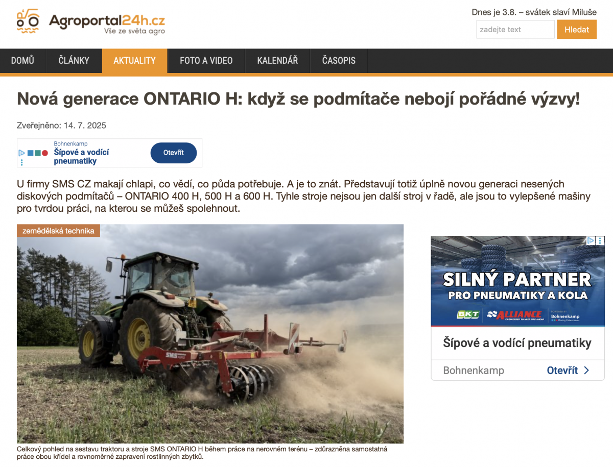 Nová generace ONTARIO H: když se podmítače nebojí pořádné výzvy! (Agroportal24h.cz, CZ, 14. 7. 2025)