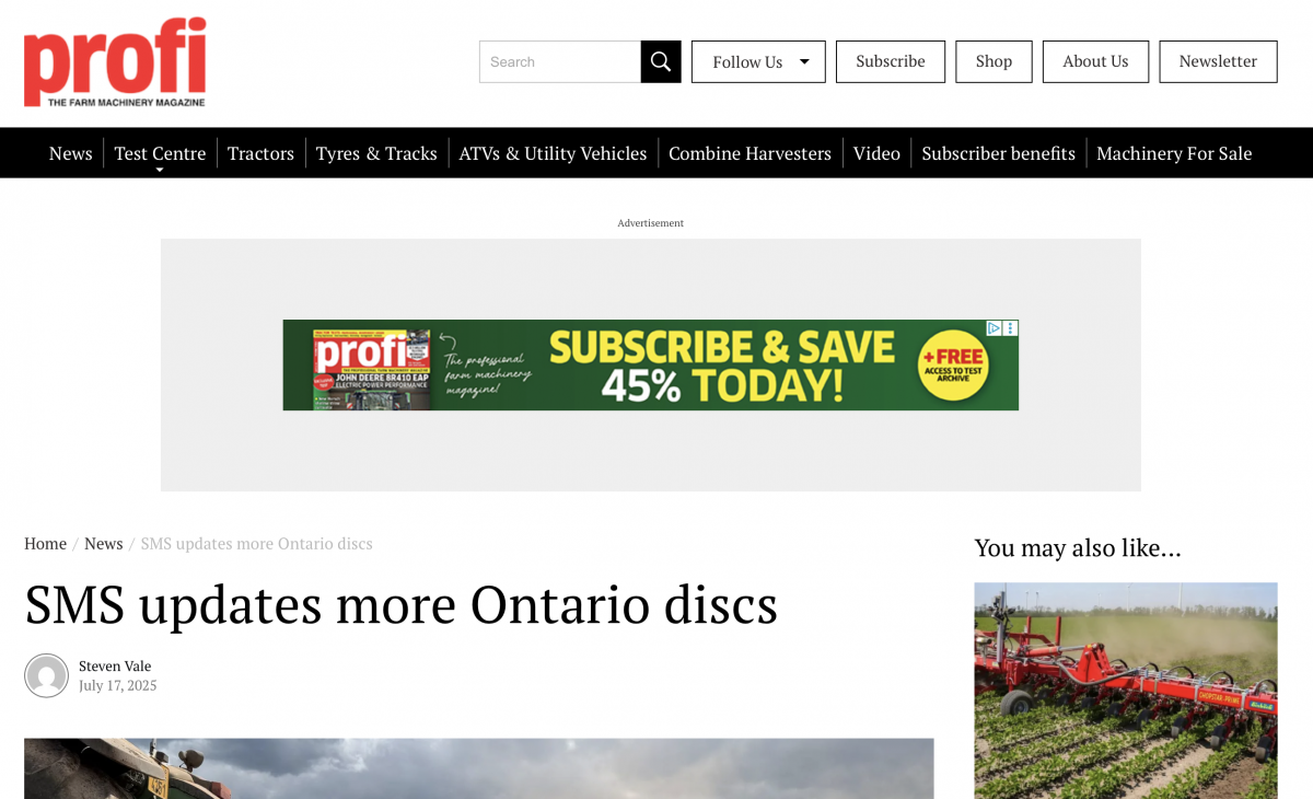 SMS CZ präsentiert neue Generation der angebauten Scheibeneggen Ontario H (Top Agrar, DE, 6. 7. 2025)